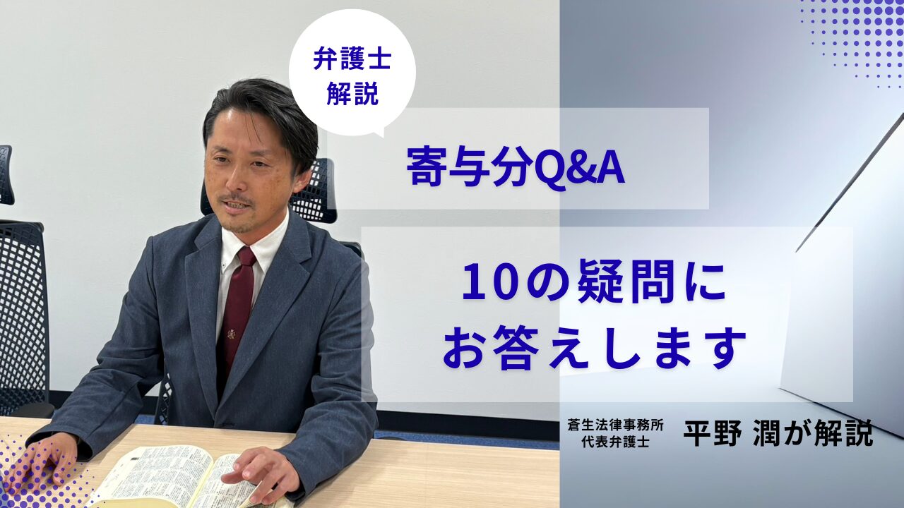 蒼生法律事務所 代表弁護士 平野 潤です。本日は、最近ご相談が増えた「寄与分(きよぶん)」について解説します。