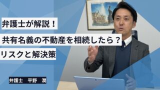 皆さん、こんにちは。蒼生(そうせい)法律事務所、代表弁護士の平野潤です。遺産相続の話合いの中で、ご実家などの不動産をどう分けるかという問題は、非常によくあるご相談の一つです。特に、「兄弟みんなで平等に」という思いから、不動産を共有名義(きょ...